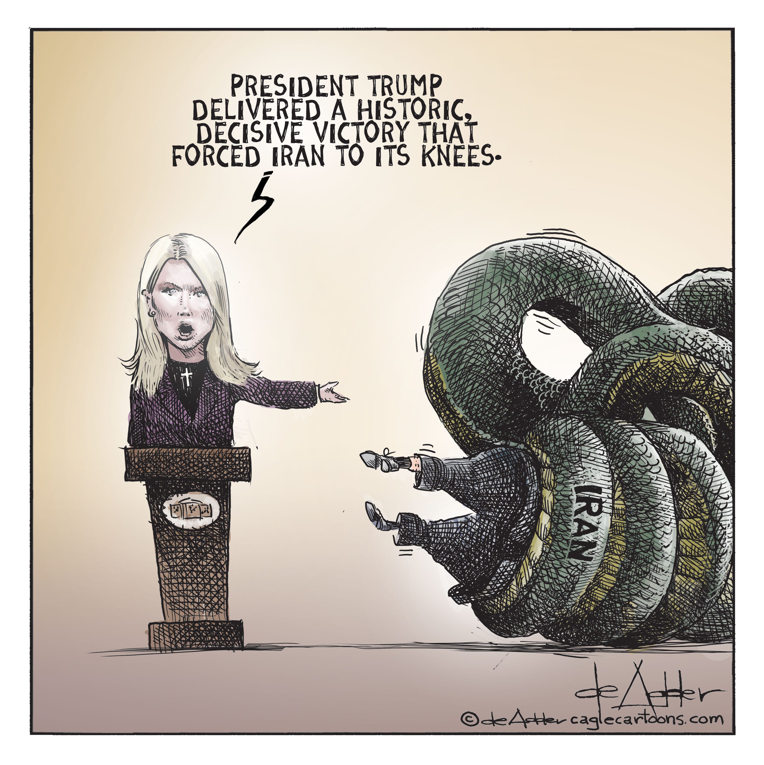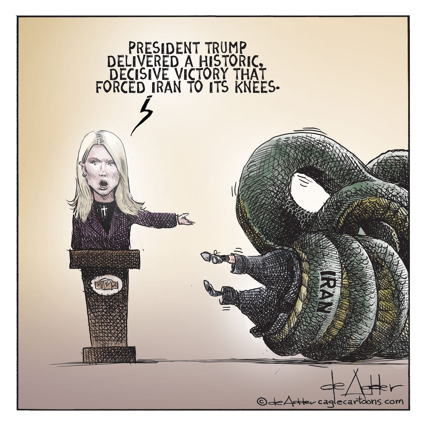 nailed it again, ty Michael! your sense of metaphor & irony is utterly sublime. plus your usual attention to detail: Karolying's huge cross is right on target. i also love the quirky tension trying to imagine the malignant 🍊 forcing a leggless creature "to it's knees" 🤣 🤘❤️🔥‼️