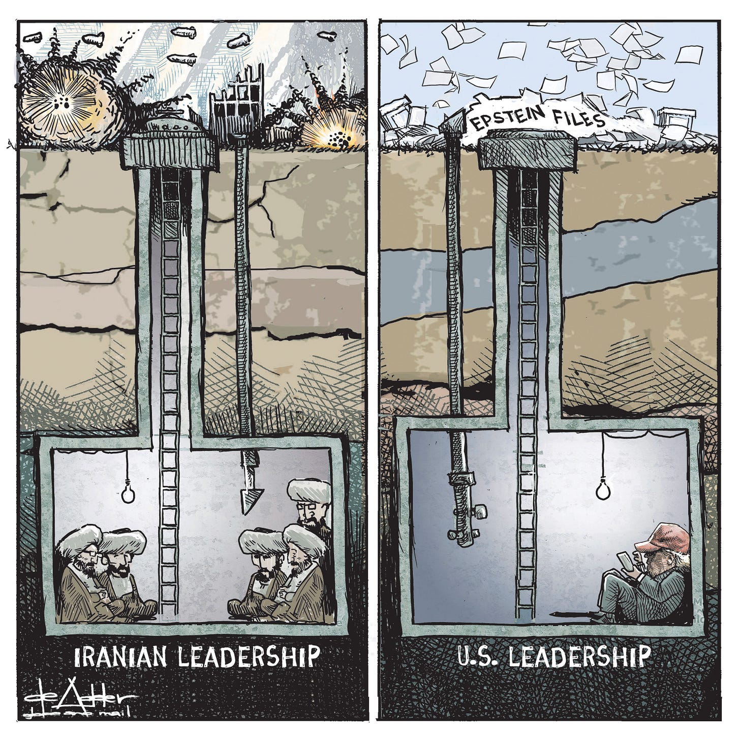 You can take the Ayatollah out of Iran but you can’t take Trump out of the Epstein files.