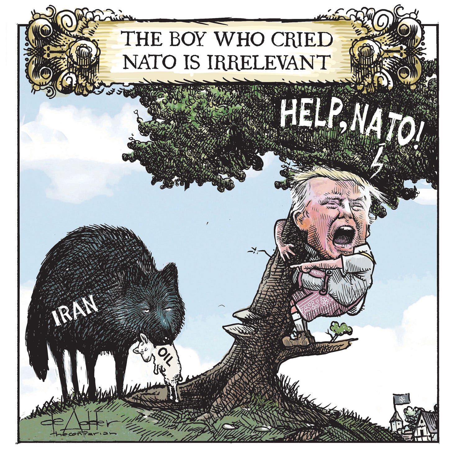 Love both the rich multi-layer metaphor and the attention to detail. The tiny NATO flag over the euro-village roofs is a perfect touch. Keep up the amazing work, I really enjoy following you! 🙏🏻❤️🔥‼️