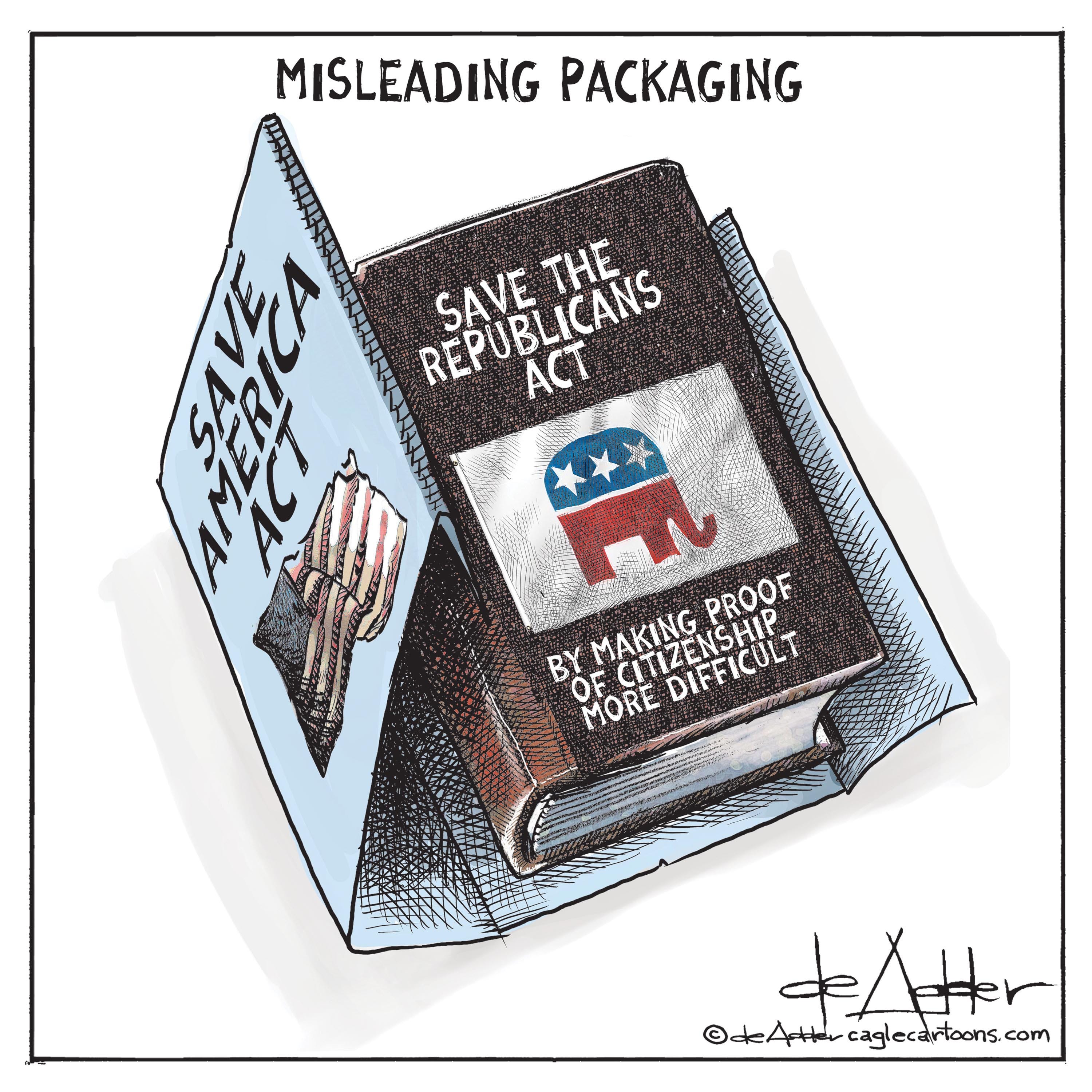 Save America ActMisleading packagingMichael de AdderMar 17, 20262922876ShareTHE deEP STATE : The political artwork of Michael de Adder is a reader-supported publication. To receive new posts and support my work, consider becoming a free or paid subscriber.SubscribeCanadian CartoonsPrevious