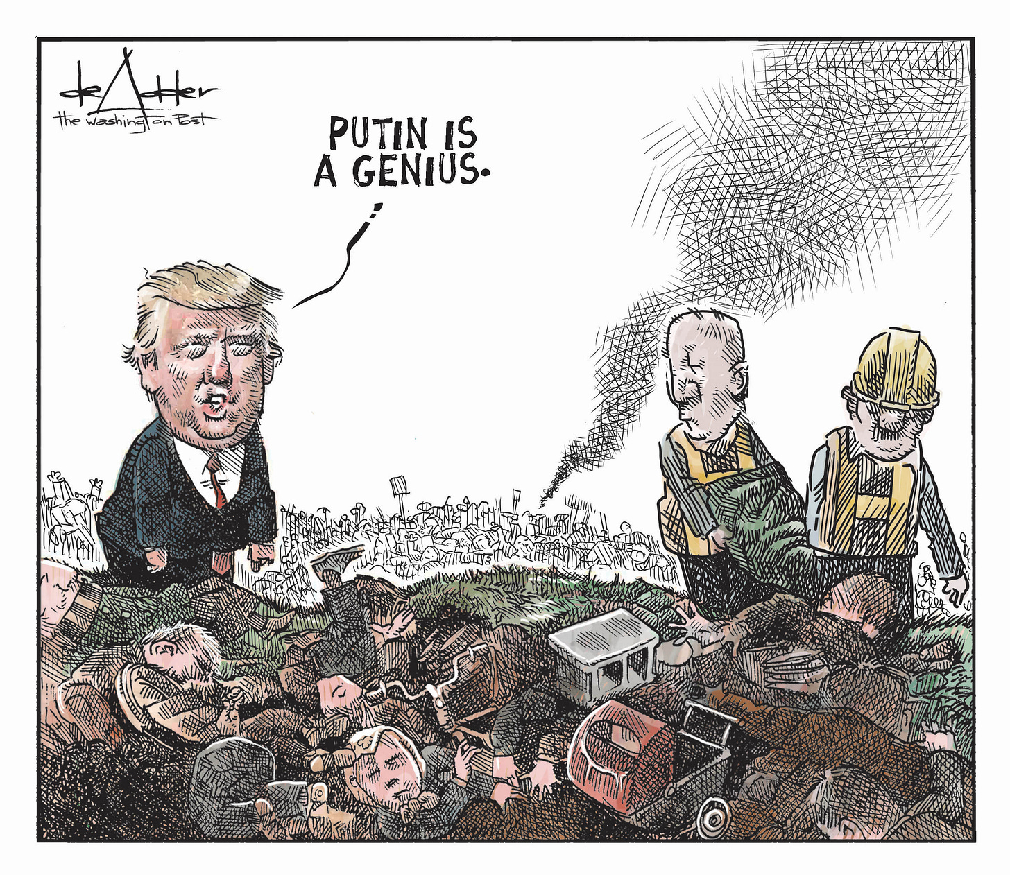 Succinct! The power of a cartoon editorial conveys more than 1,000 words about Trump’s dementia-fueled trash talk and narcissistic lies toward us lately.