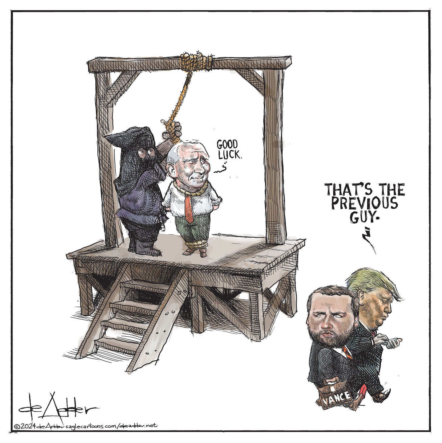 The best of 2024 [Part 3]Everything changed after the attempted assassination of Donald TrumpMichael de AdderDec 21, 20242151221ShareFollowing the debate, it seemed like everything was going the Democrats way, but was it really. Part 4 [Tomorrow] will show how things turned. See also my Globe and Mail cartoon for Saturday. PreviousNext