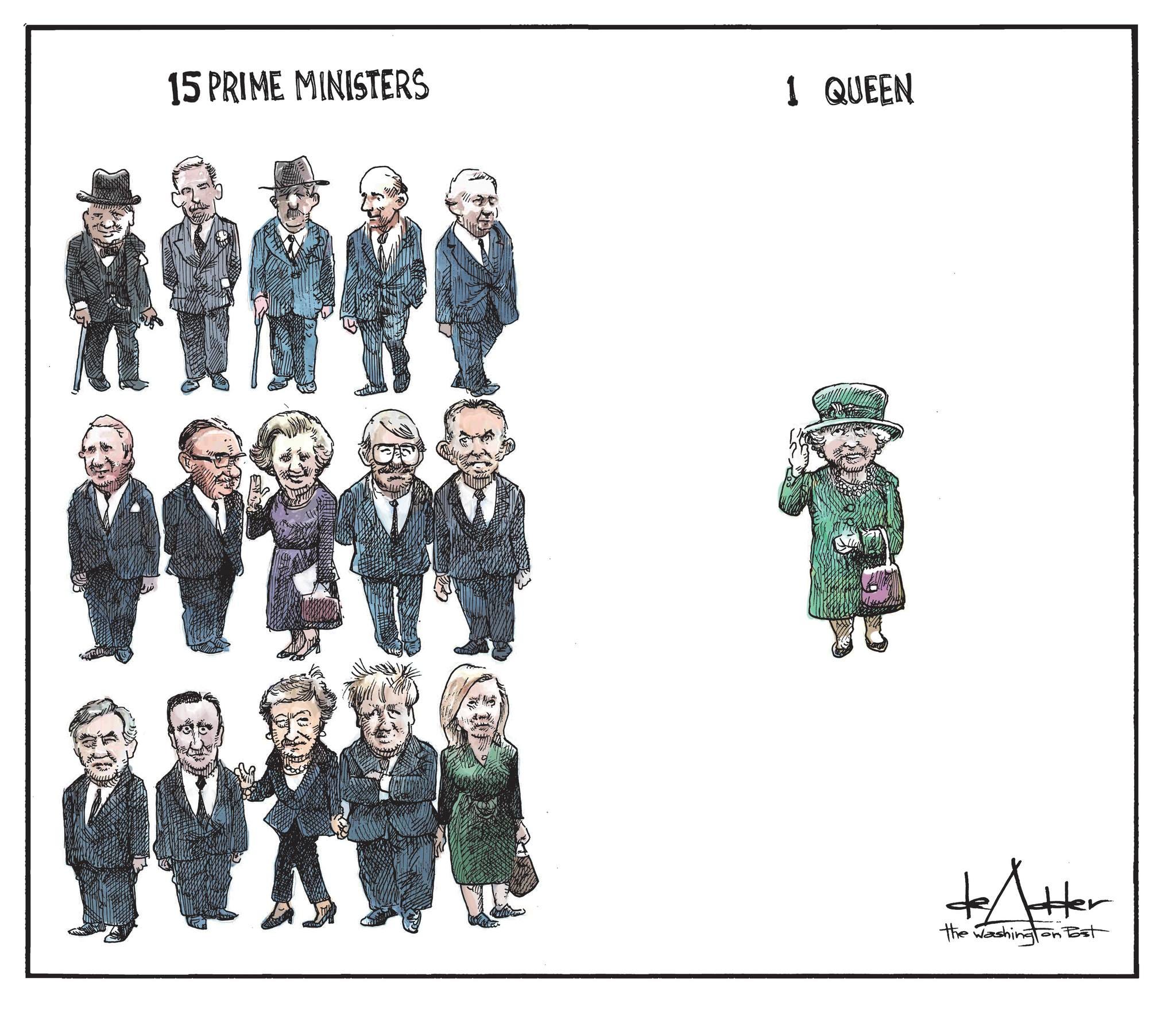 That included 15 prime ministers and one Queen. And the 17th interval was left for colour.